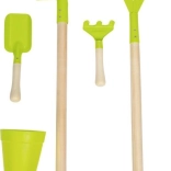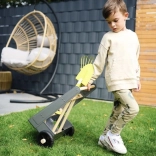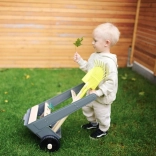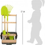 Dank der festen Räder und stabilen Konstruktion lässt sich der Wagen leicht durch den Garten ziehen und schieben, was das Gärtnern für Kinder erleichtert.