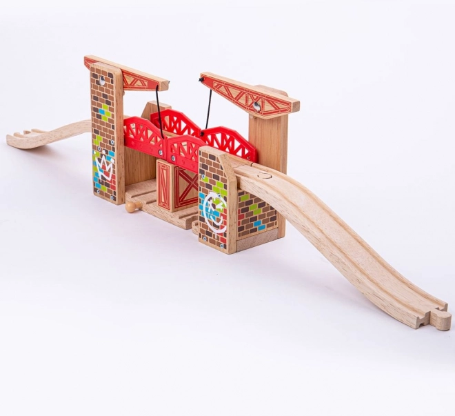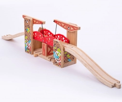 Doppelhubbrücke Bigjigs Rail ist eine fantastische Ergänzung für jedes Holzeisenbahn-Set. Beide Seiten der Brücke können angehoben werden, um eine reibungslose Durchfahrt der Züge zu ermöglichen, oder Sie können sie absenken, um die Oberseite der Brücke zu überqueren.