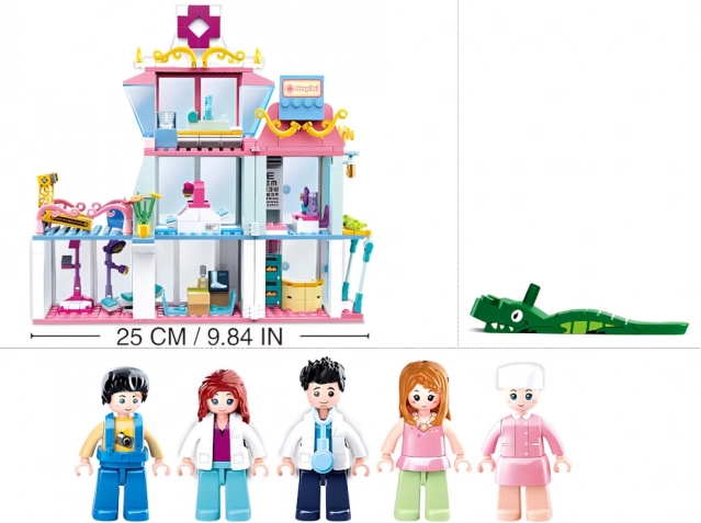Entdecken Sie die Schönheit und Möglichkeiten, die der Sluban Girls Dream Krankenhaus Bausatz bietet. Dieses Set enthält 458 Teile und 5 detailliert gestaltete Figuren, die Kinder dank drehbarer und schwenkbarer Teile anpassen können.