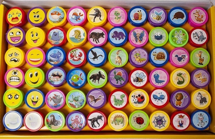 Entdecken Sie endlose Spielmöglichkeiten für Ihre Kinder mit diesem vielfältigen Stempelset. Kinder können ihre Kreativität entwickeln und die Namen von Tieren und Objekten lernen, was ihr Lernen fördert. Dieses Stempelset ist ideal zum Dekorieren von Heften, Einladungen oder als Umriss zum Ausmalen.