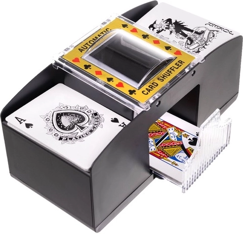 - Einfach zu bedienen - Einfach die Karten auf die oberen Schalen legen, Knopf drücken und die gemischten Karten aus der unteren Schale entnehmen.