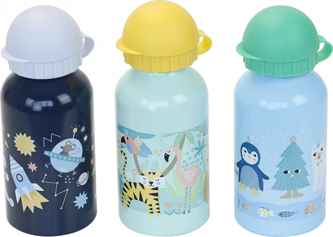 Wählen Sie zwischen einem Weltraumabenteuer, einer tierischen Safari oder der winterlichen Arktis. Verspielte Illustrationen fördern die Freude am Trinken und den individuellen Stil Ihres Kindes.