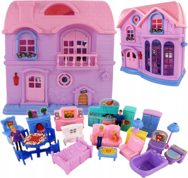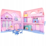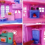 Die riesige zweistöckige Residenz ist ausgestattet mit 5 separaten Räumen, darunter ein Bereich für: Küche, Badezimmer, Schlafzimmer und Wohnzimmer. Darüber hinaus verfügt die Villa über einen Balkon. Das Set enthält schöne Möbel, die eine perfekte Ergänzung für jeden Raum im Haus darstellen. Wie es sich für ein echtes Haus gehört, hat es eine echte Türklingel und Beleuchtung. Beim Drücken der Klingel hört man eine Melodie und Hundebellen.