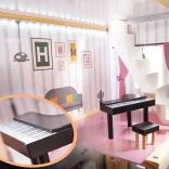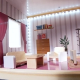 Kaltweiße LEDs entlang der Zimmerdecken erhellen das ganze Haus und betonen die Interieur-Details. Stromversorgung 3× AA (nicht enthalten).
