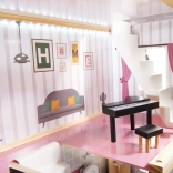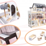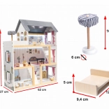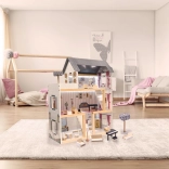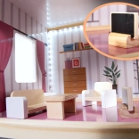 Das dreistöckige Puppenhaus mit einer Höhe von 78 cm ist für lange Stunden kreativen Spielens konzipiert. Realistische Interieurdrucke, Treppen und die offene Bauweise sorgen für einen einfachen Zugang zu allen Räumen. Die integrierte LED-Lichtleiste erhellt die Zimmer stimmungsvoll und schafft eine gemütliche Atmosphäre beim Spielen.