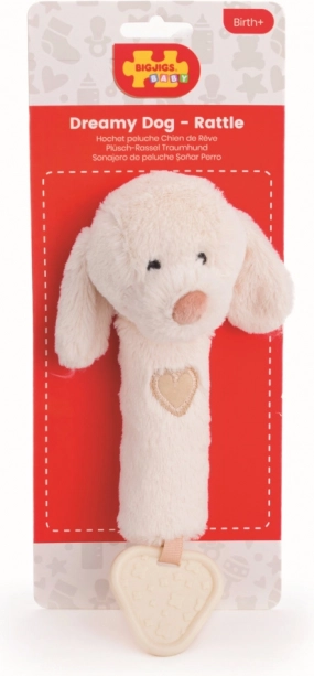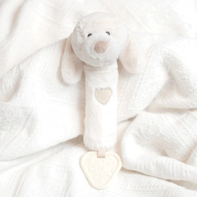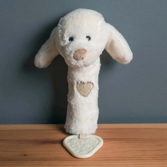 Das Hündchen besteht aus hochwertigen Materialien aus verantwortungsvollen Quellen und ist so gestaltet, dass es schon ab der Geburt sicher ist. Es ist leicht, gut greifbar und angenehm weich – ideal für erste taktile Entdeckungen.