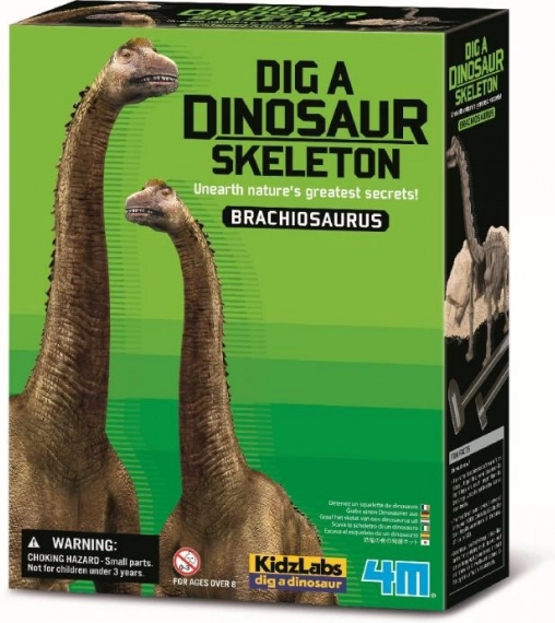 Dieses Ausgrabungsset lässt Kinder zu kleinen Paläontologen werden. In einem Gipsblock ist ein Brachiosaurus-Skelett versteckt, das sie mit Werkzeugen Schritt für Schritt freilegen und anschließend leicht zu einem 3D-Modell zusammensetzen. Eine großartige Möglichkeit, spielerisch über Dinosaurier und die Urzeit zu lernen.
