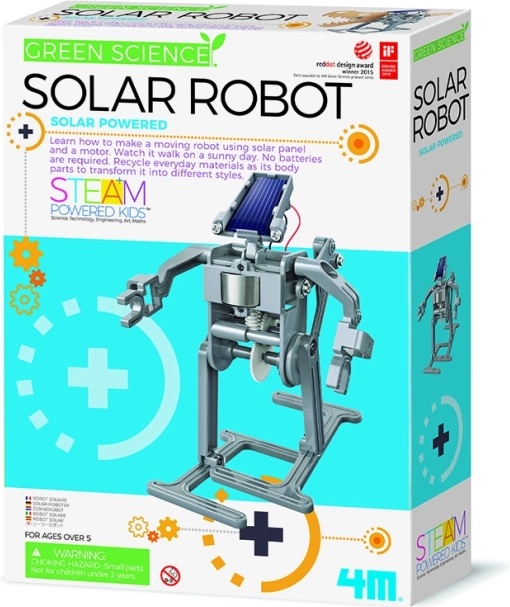 Wir präsentieren Ihnen den 4M Solar Roboter, das ideale Spielzeug für kleine und große Entdecker. Dieses Bildungskit ermöglicht es, einen Roboter zu bauen, der durch saubere Solarenergie angetrieben wird, ideal für alle Altersgruppen ab 5 Jahren. Mit gängigen recycelten Materialien können Sie einen einzigartigen Roboter in Form eines Dinosauriers oder Monsters erstellen.