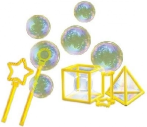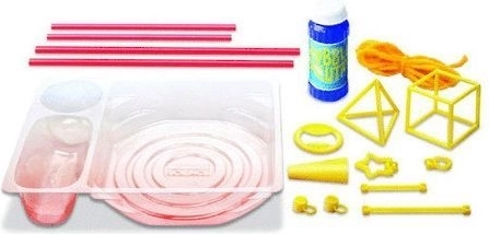 Set zur Herstellung riesiger Seifenblasen. Enthält eine Anleitung zur Herstellung einer eigenen Lösung sowie Hilfsmittel für verschiedene Seifenblasen-Tricks.