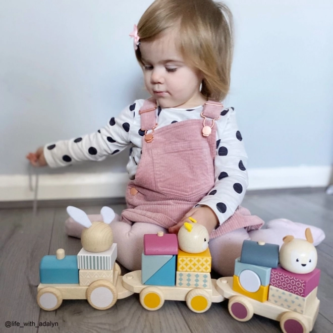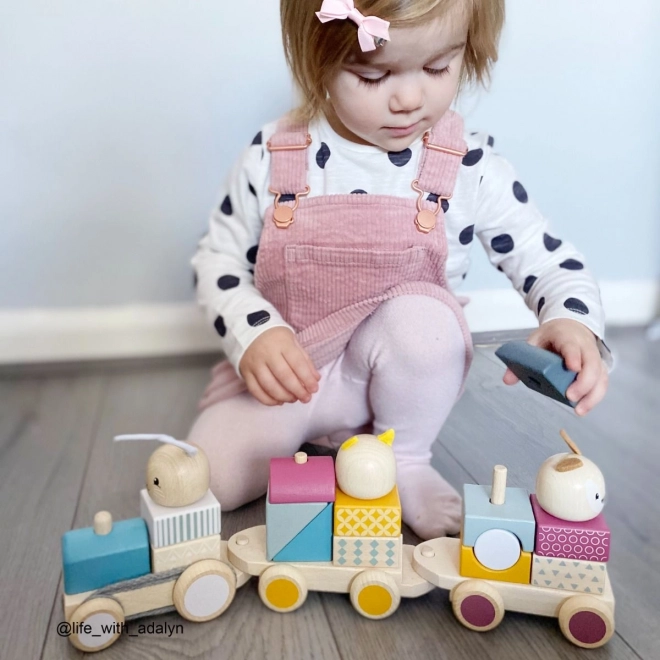 Der Zug begeistert Kinder sowohl als Ziehspielzeug als auch als Steckspiel und Puzzle. Unterschiedliche Kombinationen der Bausteine fördern Fantasie, Geduld und Koordination.