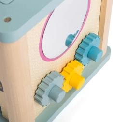 Entdecken Sie den vielseitigen motorischen Würfel aus hochwertigem 100% FSC-Holz, der Kinder stundenlang beschäftigt. Auf jeder Seite wartet eine andere Aktivität – Formensteckspiel, Kugelbahn, Zahnräder und mehr. Die Kombination aus naturbelassenem Holz und zarten Pastellfarben ist ideal für Mädchen und Jungen. Das Spielzeug fördert Motorik, Kommunikation und das Erkennen von Zahlen und ist dank FSC-zertifizierter, schonender Materialien sicher für Kinder.