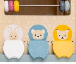 Zarte Pastellfarben und eine glatte Verarbeitung laden zum wiederholten Spielen ein, während die vielfältigen Aktivitäten unterschiedliche Fähigkeiten unterstützen – von der Feinmotorik bis zur Sprachentwicklung. Die FSC-Zertifizierung garantiert eine nachhaltige Holzherkunft und eine verantwortungsvolle Produktion.
