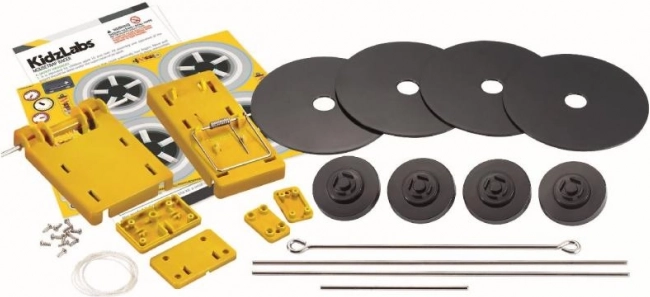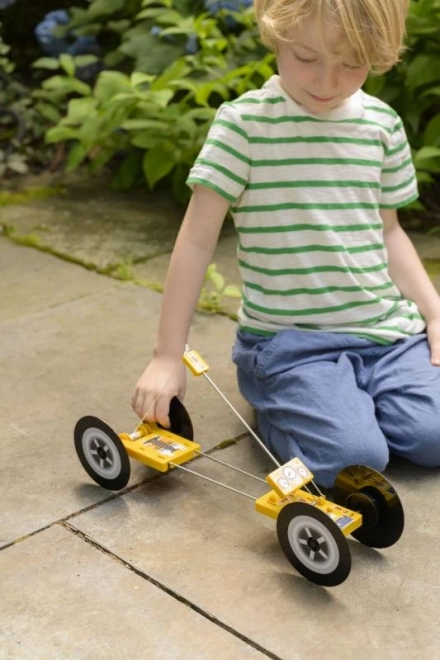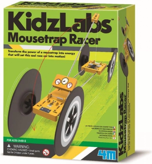 Der KidzLabs Rennwagen zeigt Kindern die Grundlagen der Physik durch die Umwandlung von Energie aus der Mausefalle in Bewegung.