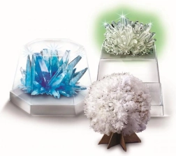 Verwandeln Sie Ihren Tisch in ein kleines wissenschaftliches Labor. Dieses Lernset ermöglicht es Ihnen, die Entstehung von Kristallen aus einer Lösung zu beobachten, Aquamarin-Kristalle, im Dunkeln leuchtende Mondkristalle sowie einen eindrucksvollen Kristallbaum zu züchten. Die perfekte Wahl für angehende Geologinnen und Geologen und neugierige Teenager.