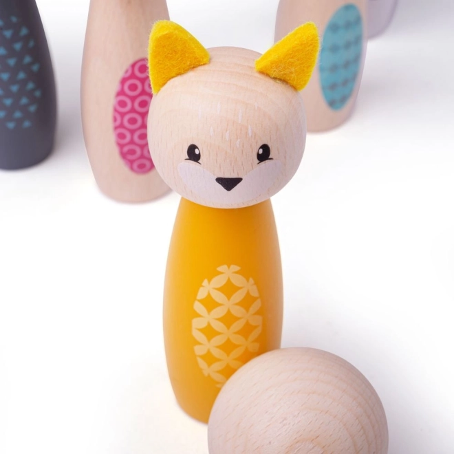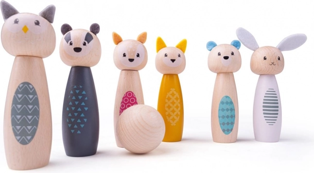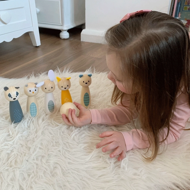 Machen Sie Kindern eine Freude mit diesem stilvollen Kegelset mit niedlichen Tieren – Eule, Dachs, Hirsch, Katze, Bär und Kaninchen. Die farbenfrohen Figuren aus hochwertigem FSC-zertifiziertem Holz sind glatt, angenehm anzufassen und widerstandsfähig für den Alltag. Geeignet zum Spielen zu Hause auf Teppich oder glattem Boden.