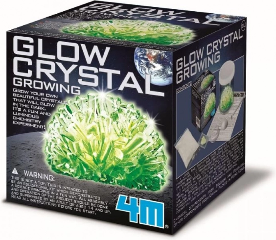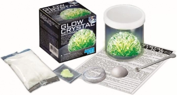 Züchten Sie einen Kristall, der nach dem Aufladen im Dunkeln leuchtet. Ideal als effektvoller Blickfang im Regal oder auf dem Schreibtisch.