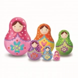 Die Matroschkas werden nach und nach kleiner und lassen sich ineinander stecken. Ein spaßiges Zusammenstellen und wunderschön zum Ausstellen im Regal.