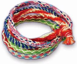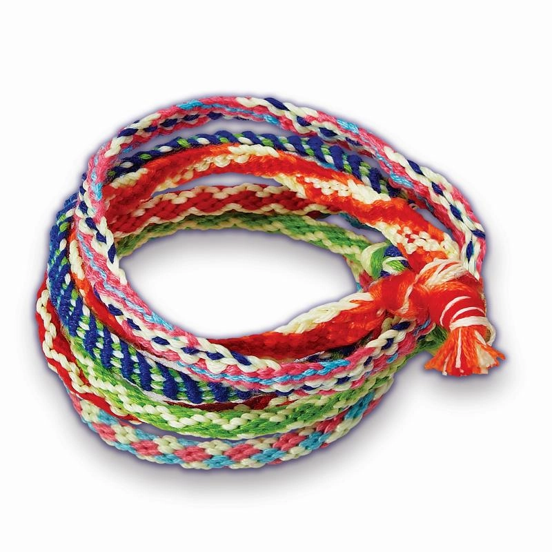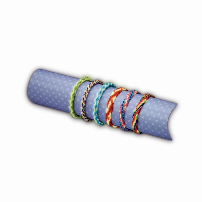 Im Set enthalten sind farbige Fäden/Schnüre, ein Hilfsmittel/Clip oder eine Scheibe für einfaches Flechten sowie eine illustrierte Anleitung auf Deutsch und Englisch. Eine tolle Idee für ein kreatives Geschenk und Spaß zu Hause, auf Ausflügen oder bei Kindergeburtstagen.