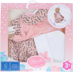 Kleidung Mia von der Marke Petitcollin aus der Bibichou Kollektion ist die perfekte Wahl für Ihre Puppe. Es besteht aus einem lockeren rosa Overall mit schönem Druck, ergänzt durch weiße Socken und eine weiße Mütze. Jedes Stück von Petitcollin zeichnet sich durch sorgfältige Verarbeitung aus und wird im Geiste der französischen Eleganz gefertigt.