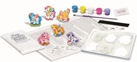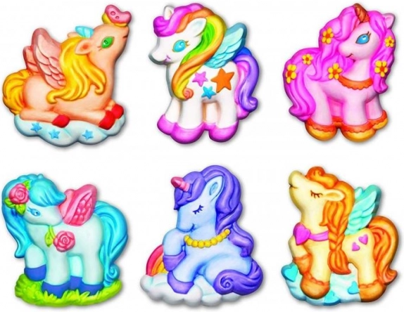 In diesem Kreativset können Sie Gipsabdrücke formen und bemalen. Das Produkt enthält alles, was Sie zur Herstellung von Magneten oder Broschen in Einhornform benötigen.