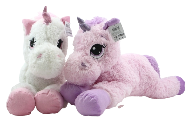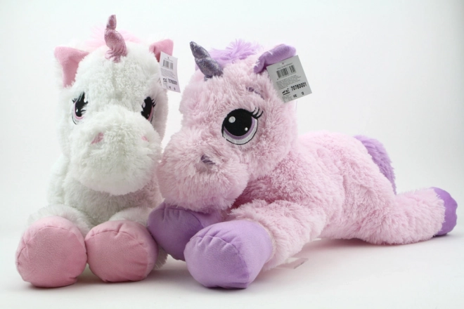Plüsch-Einhorn mit einer Größe von 72 cm ist aus hochwertigem Plüsch gefertigt und in zwei Farbvarianten erhältlich, weiß und rosa.