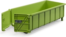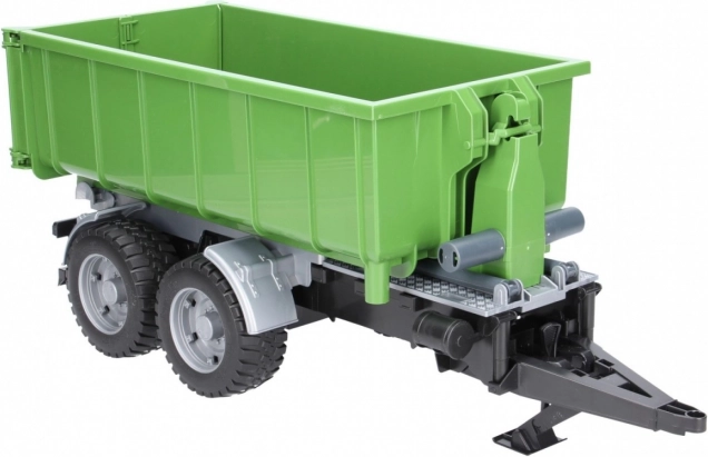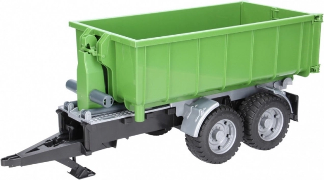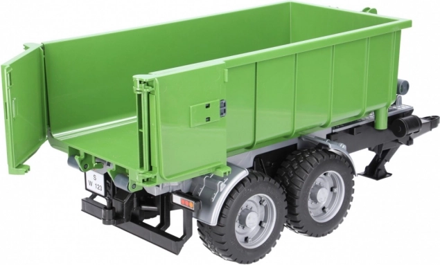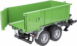 Dieser realistische BRUDER-Anhänger in grün-schwarzer Ausführung erweitert jeden Traktor um einen vielseitigen Container. Dank des Kippmechanismus und der öffnenden Heckklappe gelingt das Entladen mühelos; zudem lässt sich der Container vom Fahrgestell abnehmen und separat verwenden.