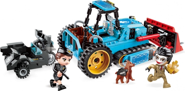 Begib dich mit der mutigen Polizistin in den Einsatz und stoppe den Banditen, der versucht, seltene goldene Kristalle mit einem mächtigen Bulldozer zu stehlen. Das Qman Police Battle Force Bauset überzeugt durch kräftige Farben, hochwertige Verarbeitung und unterhaltsame Spielelemente, die die Fantasie von Kindern anregen.