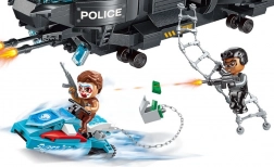 Treten Sie ein in die Welt actiongeladener Missionen mit einer Polizeieinheit, die Verbrechern keine Chance lässt. Der Hubschrauber mit funktionierenden Rotoren und absenkbarer Kletterseilleiter ermöglicht blitzschnelle Einsätze direkt ins Zentrum des Geschehens, während der Verfolgte auf einer umbaubaren Maschine flieht – vom Motorrad zum Jetski in wenigen Momenten.