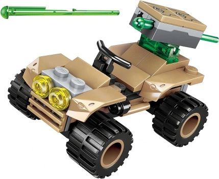 Nutze die Komponenten, um verschiedene Modelle wie Quad, Kampfjet oder Hubschrauber zu bauen, die du nach Belieben kombinieren kannst.