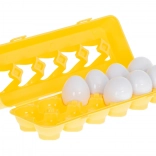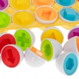 Das Set enthält 12 Eier mit verschiedenen Formen und Farben, die unter der Schale verborgen sind. Das Spiel besteht darin, die Hälften der Eier entsprechend ihrer Form und Farbe zusammenzusetzen, um ein Ganzes zu bilden. Dies ist nicht nur ein unterhaltsames, sondern auch ein pädagogisches Spiel, das das logische Denken stärkt. Die Eier sind leicht und einfach zu transportieren, was sie ideal macht, um bei langen Reisen oder beim Warten im Arztzimmer zu unterhalten.