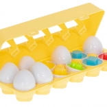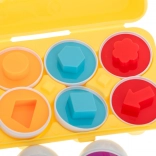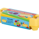 Das Spielzeug ist perfekt zum Erlernen von Formen und Farben geeignet. Verpackt in einer Kunststoffbox in Form einer Eierpalette.