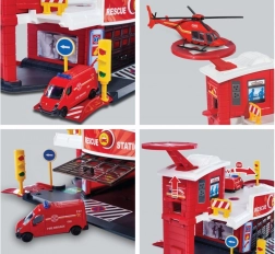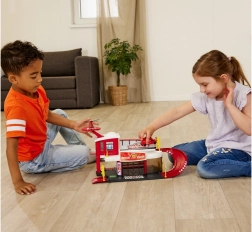 Dank des speziellen Helipads und der Rampe können Kinder realistische Rettungseinsätze nachspielen und ihre Mission aus dem zweiten Stock starten.