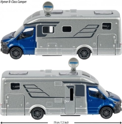 Das Modell ist offiziell von HYMER und MERCEDES-BENZ lizenziert und bietet eine attraktive Kombination aus Innen- und Außenbeleuchtung sowie 2 realistischen Sounds – Natur- und Motorgeräusche – aktiviert durch Drücken der Motorhaube. Öffnende Türen, eine drehbare Satellitenantenne und Reifen mit Profil sorgen für geschmeidiges Fahren und zahlreiche Spielszenarien zu Hause und unterwegs.