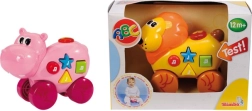 Das Spielzeugtier auf Rädern ist ideal für kleine Kinder. Es verfügt über 4 verschiedenfarbige und -förmige Tasten, die insgesamt 40 Kindermelodien abspielen können. Mit einer Größe von 14 cm ist es einfach zu handhaben und perfekt für Kinder, um sowohl Spaß zu haben als auch Musik zu genießen.