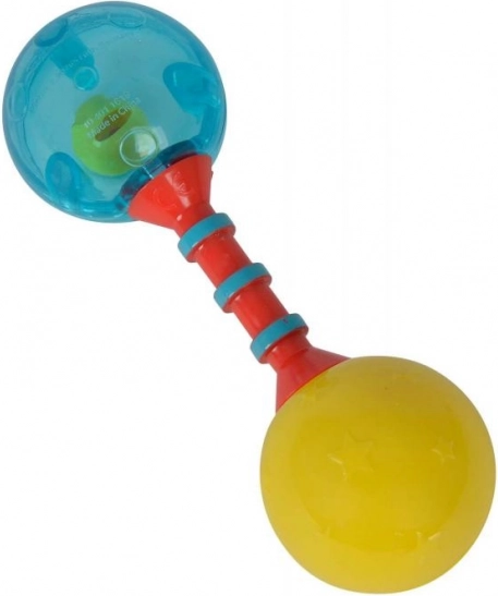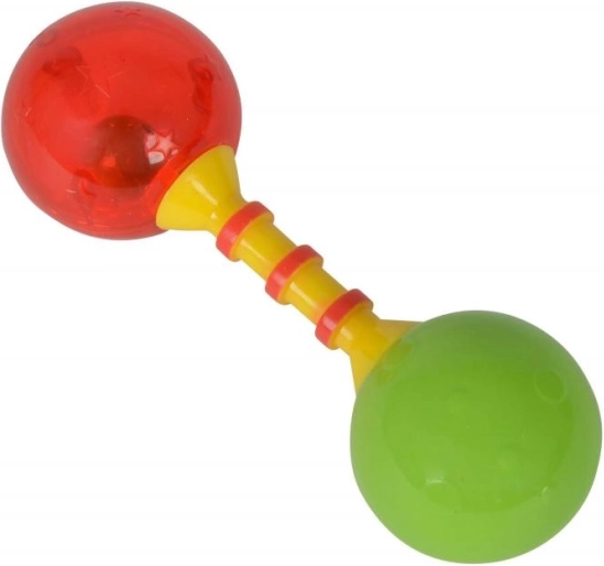 Diese Rassel stimuliert die sensorische Entwicklung des Kindes dank ihrer leuchtenden Farben und den erzeugten Geräuschen beim Schütteln.
