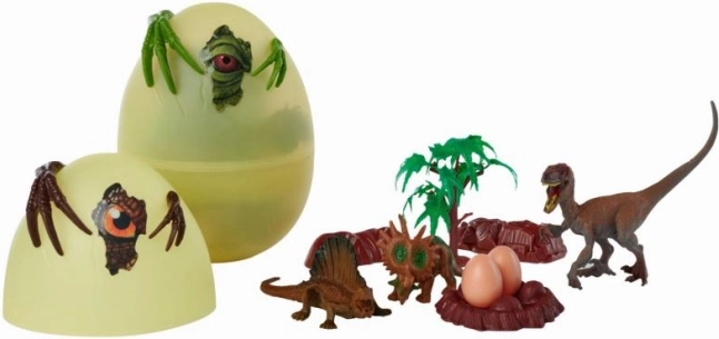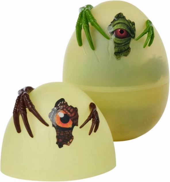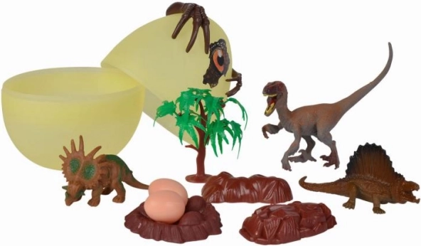 Das 17 cm hohe Ei verbirgt mehrere Dinosaurier und Zubehörteile, die Kinder sofort nach dem Öffnen begeistern.