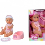 Das Set enthält alles, was für das Pflege-Spiel eines Neugeborenen erforderlich ist: Fläschchen, Schnuller, Töpfchen und Lätzchen. Das realistische Aussehen und das angenehme Material sorgen dafür, dass die Puppe ein fester Bestandteil der Spiele Ihrer Tochter wird.