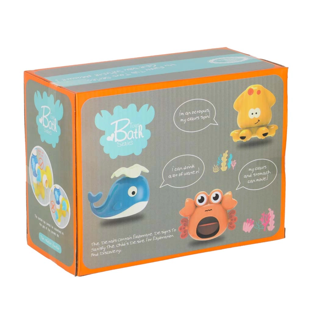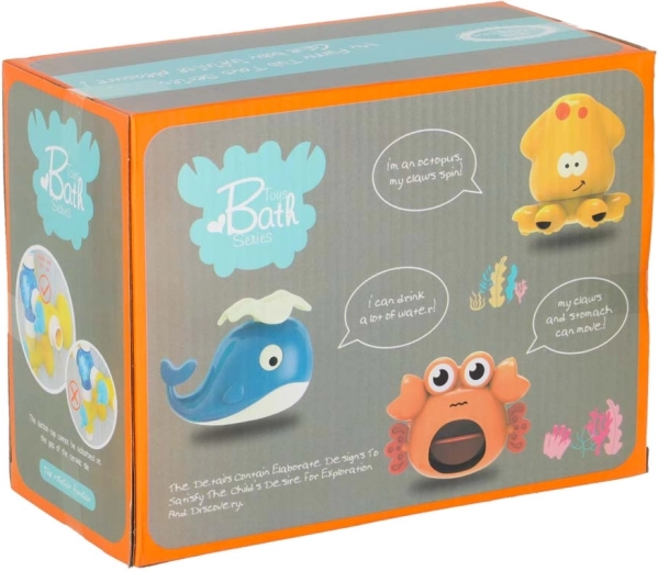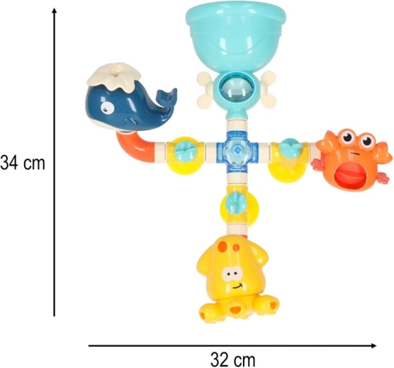 Diese farbenfrohe Wasserbahn für die Badewanne besteht aus Trichtern, Rohren und fröhlichen Auslässen in Form von Wal, Krabbe und Oktopus. Kinder gießen einfach oben Wasser hinein und beobachten, wie es durch das System fließt, Räder antreibt und aus verschiedenen Öffnungen als Fontäne oder Wasserfall herausströmt. Sichere Materialien und abgerundete Kanten sind ideal für das tägliche Wasserspiel.