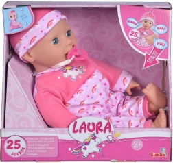 Die Puppe Laura ist der ideale Begleiter für Kinderspiele. Mit ihrer Höhe von 38 cm und 25 Kindersounds bietet sie endlosen Spaß und fördert die Fantasie Ihres Kindes. Laura hat einen weichen Körper, einen Schnuller und blinzelnde Augen, was ihr ein realistisches Aussehen verleiht.