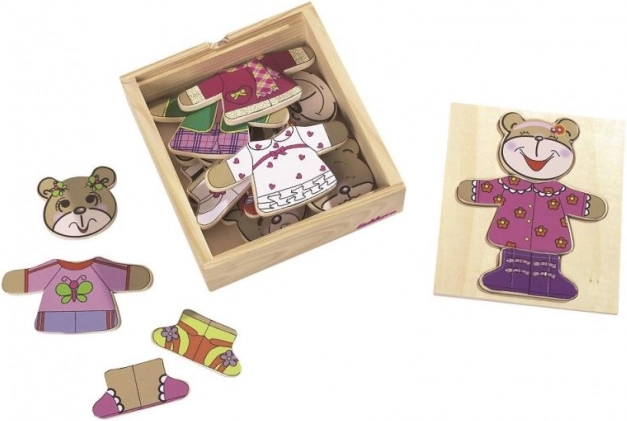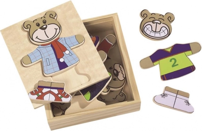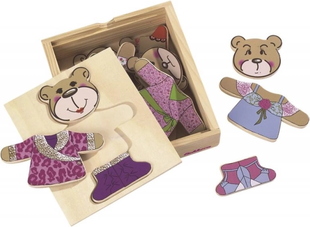 Kleide deinen Bärchen mit diesem lustigen Puzzle an! Enthält 20 Teile und kommt in einer praktischen Holzbox.