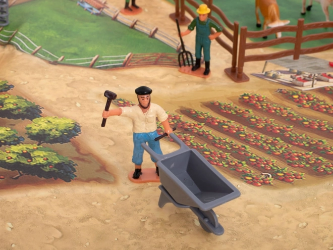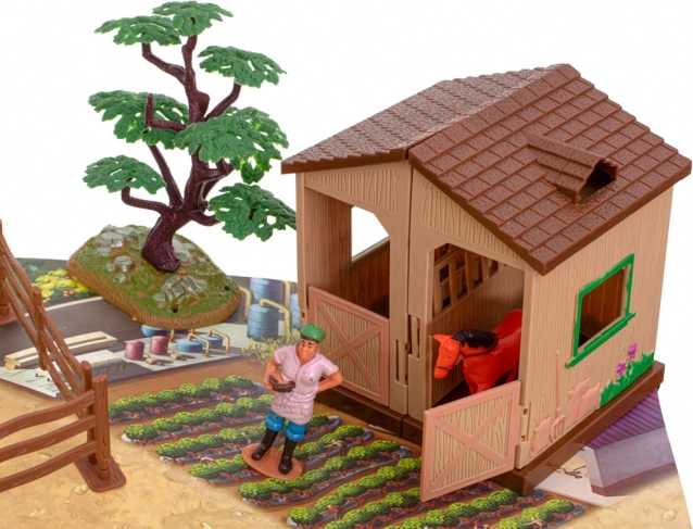 Breiten Sie die Unterlage aus, bauen Sie Stall, Gehege und Baum auf. Kinder erhalten eine übersichtliche, inspirierende Umgebung zum Spielen und um das Landleben kennenzulernen.