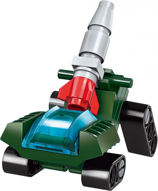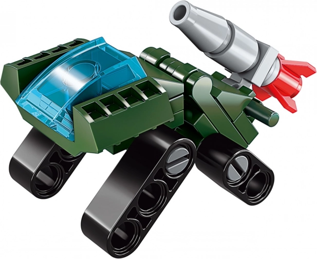 Baue einen Panzer, ein Fahrzeug mit Kanone oder deine eigene Variante. Das Umbauen geht schnell und macht Spaß – ideal zur Förderung der Kreativität.