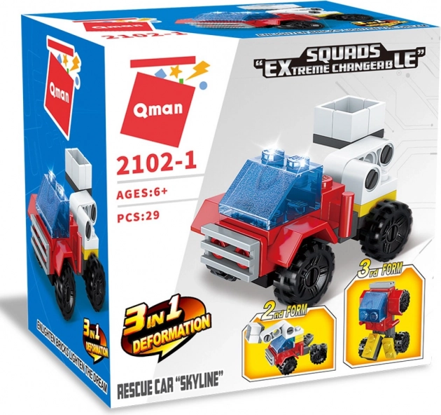 Genieße grenzenlose Kreativität mit dem Bauset Qman Squros – Rettungsfahrzeug Skyline 3-in-1. Aus einem Set Bauteilen baust du ganz leicht drei verschiedene Modelle: ein Rettungsfahrzeug, eine kleine Arbeitsmaschine oder einen Roboter. Dank der kompakten Größe ist es ideal für unterwegs und kurze Spielpausen.