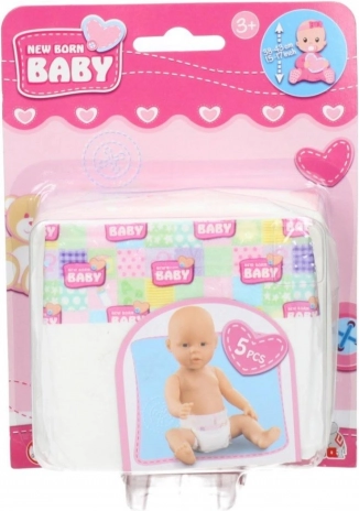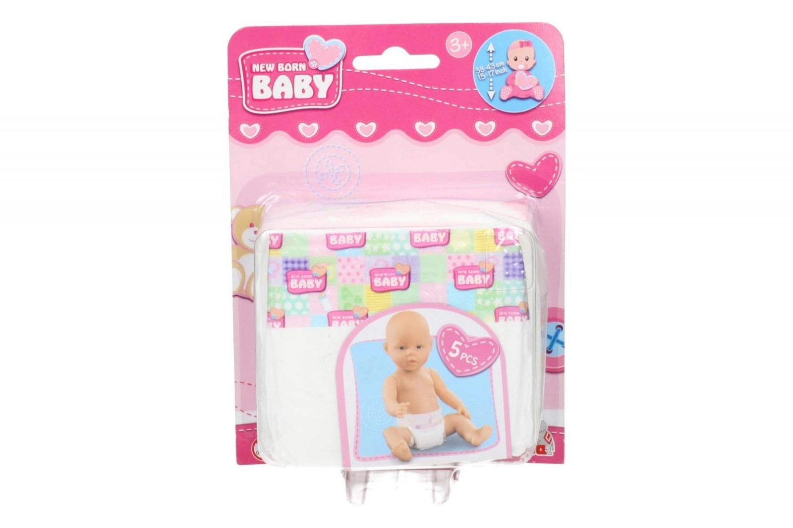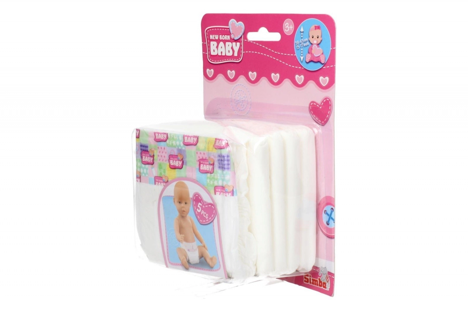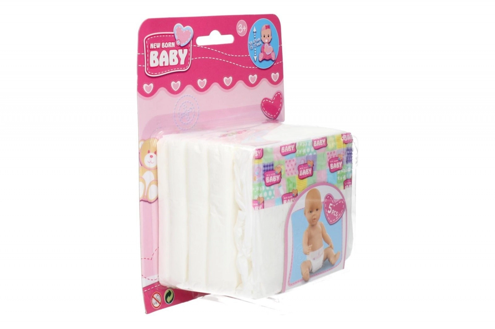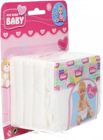 Die praktische Packung mit 5 Stück eignet sich für zu Hause und unterwegs. Die Windeln sind leicht, sitzen gut und halten die Puppe bei jedem Spiel sauber. Perfekt als Ergänzung zum Puppenwagen, Puppenbett oder Pflege-Set.