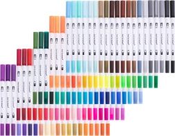 Entdecken Sie die Freude am Gestalten mit dem Set aus 100 doppelseitigen Markern, das eine komplette Farbskala für Hand Lettering, Skizzen, Bullet Journal, Hervorhebungen und Schulprojekte bietet. Jeder Stift kombiniert einen präzisen 0,4-mm-Liner für Konturen und Text mit einer breiteren 1–2-mm-Spitze für schnelles Ausmalen.