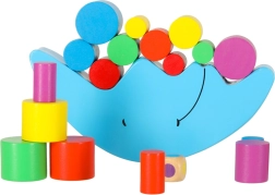 Dieses hölzerne Balancespiel fordert Geduld und Geschicklichkeit der ganzen Familie. Ziel ist es, möglichst viele bunte Zylinder auf den schaukelnden Mond zu legen, ohne dass sie herunterfallen. Das Spiel ist leicht zu verstehen, aber überraschend spannend – jedes weitere Teil verändert das Gleichgewicht.