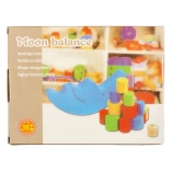 Montessori-Balancespiel Holz-Mond mit Würfel und bunten Blöcken