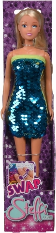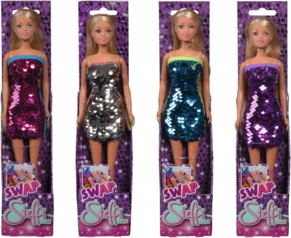 Erleben Sie den zauberhaften Verwandlungsspaß mit der Steffi Love Puppe in einem glitzernden Kleid! Dieses besondere Kleid ändert seine Farbe, wenn Sie die Pailletten umkehren, und bringt somit immer wieder neue Looks hervor.