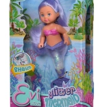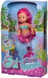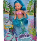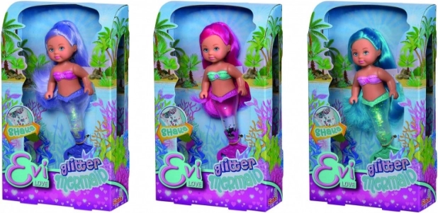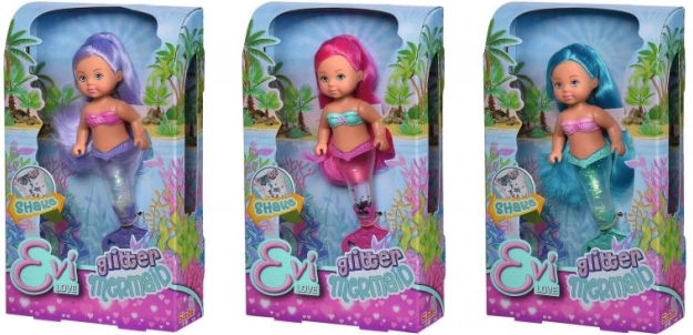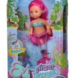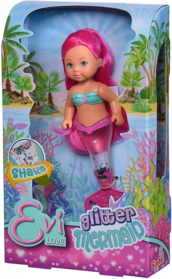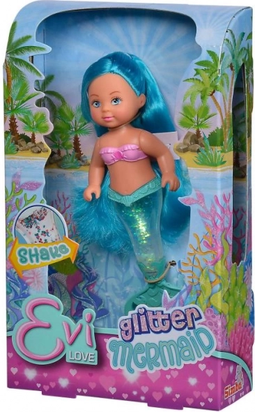 Entdecken Sie die zauberhafte Unterwasserwelt mit der Evi Love Puppe als Meerjungfrau. Ihre Flosse ist mit Glitzer gefüllt, der sich nach dem Schütteln wunderschön verteilt und einen strahlenden Effekt erzeugt. Dank der kompakten Höhe von 14 cm liegt die Puppe auch kleineren Kindern gut in der Hand und ist bestens für Reisen geeignet.