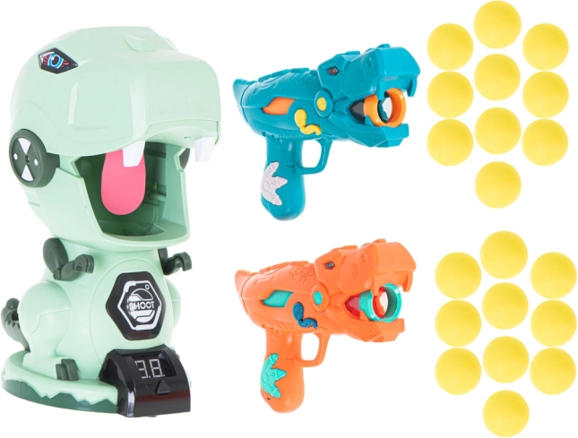 Zwei stilvolle Pistolen in Dinosaurierform ermöglichen es, die weichen Schaumbälle sicher und effektiv zu schießen. Ideal für Spiele zu zweit und Wettbewerbe.